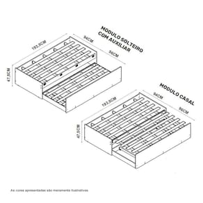 - Cama auxiliar ideal para colchões de 88x188 cm (COLCHÃO NÃO INCLUSO)