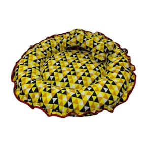 - cama em formato redondo; - dupla face; - totalmente lavável; - para cães e gatos de pequeno e médio porte; - com um cordão para franzir a cama; - acompanha travesseiro em formato de ossinho; - a cama boia tem a praticidade de poder deixar ela mais fechada ou mais aberta; - tamanho único de 50x60 cm. - ótimos para aqueles pets que adoram dormir enrolados; - não é para uso de piscinas, boia é somente o modelo da cama - cama na cor amarelo; Marca: Nica pet Ean: 7895141816978