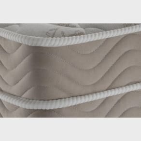 Estrutura em molas (ensacadas individualmente), placa EPS, Ortopillow, tampo em malha, bordado em Matelassê, manta de espuma D26 Pró, faixa lateral em Camurça, No Turn (não precisa virar), tratamento antialérgico e antiácaro.