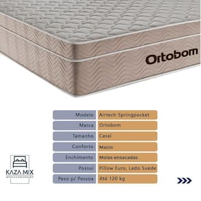 O Colchão Airtech Ortobom é a escolha perfeita para quem busca conforto e suporte. Equipado com um sistema de molas ensacadas, ele oferece suporte individualizado, garantindo o alinhamento correto da coluna e reduzindo os impactos dos movimentos durante o sono. O Euro Pillow proporciona uma camada extra de maciez, garantindo um sono ainda mais revigorante.