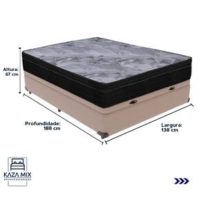 O conforto que sua casa precisa e a qualidade que você merece está na Kazamix!Redefina suas noites de sono com o Colchão Pampa Molas Ensacadas, projetado para oferecer máximo conforto e suporte. Suas molas ensacadas individualmente garantem estabilidade, minimizando vibrações e proporcionando um descanso tranquilo. O Ortopillow com tecido em poliéster de alta resistência e bordado matelassê acrescenta uma camada extra de maciez e conforto. Com tratamento antiácaro, antifungo e tecnologia No Turn, é ideal para quem busca praticidade e um ambiente de sono mais saudável. Este colchão combina qualidade e durabilidade para oferecer uma experiência de descanso incomparável.Modelo: Pampa Marca: OrtobomTamanho: CasalDimensões: 138x188X24 (Largura x Comprimento x Altura)Conforto: MacioSistema: Molas ensacadas Pillow: Euro PillowPeso Máximo recomendado: 120 kg (Por pessoa)Proteções: Antiácaro, antialérgico, antifungo, antimofoGarantia: 1 ano pelo FabricanteO conforto que sua casa precisa e a qualidade que você merece está na KazamixAproveite cada metro quadrado do seu dormitório com a Cama Box Baú!Projetada com madeira de reflorestamento reforçada, a Cama Box Baú é a escolha ideal para quem busca otimização de espaço e praticidade na organização do dia a dia.Com um baú generoso, ela oferece a solução perfeita para armazenar travesseiros extras, cobertores, malas e muito mais. Além disso, sua estrutura robusta suporta até 150 kg por pessoa, garantindo a sustentação ideal para o seu colchão e prolongando sua vida útil.O pistão a gás robusto proporciona uma abertura suave e segura do baú, oferecendo praticidade e resistência no uso diário. Para completar, o acabamento de alta qualidade combina perfeitamente com qualquer estilo de decoração, agregando elegância e versatilidade ao seu ambiente.Não perca tempo! Adquira agora mesmo sua Cama Box Baú e diga adeus à falta de espaço e desorganização.Marca: KazaMixModelo: BaúCor do Box: BegeTamanho: CasalDimensões: 138X188X37 (Largura x Comprimento x Altura) Estrutura: MadeiraPeso máximo recomendado: 150 kg (Por Pessoa)Altura do Box: 32 cm Altura dos Pés: 5 cm Altura total: 37 cm Garantia: 03 mesesSelo Ecologicamente CorretoAtenção: Antes de finalizar sua compra, certifique-se de que as dimensões do produto sejam adequadas para serem transportadas pelos elevadores, portas, escadas e corredores de sua residência. Ressaltamos que não nos responsabilizamos pelo transporte do produto por meios específicos, como escadas, guinchos ou içamentos.