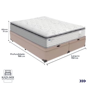 O conforto que sua casa precisa e a qualidade que você merece está na Kazamix!Colchão Probel Amsterdã – a escolha perfeita para noites de sono inigualáveis. Equipado com Molas Ensacadas Prolastic, oferece suporte individualizado, reduzindo a transferência de movimentos para um descanso mais tranquilo. Seu Pillow Top Super proporciona uma camada extra de maciez, elevando o conforto e garantindo uma experiência de luxo.Com camadas de espuma D33 e D65, o Amsterdã combina firmeza e durabilidade, enquanto as proteções antiácaro, antialérgico e antifungo criam um ambiente de sono saudável.Invista em qualidade e bem-estar com o Colchão Probel Amsterdã e transforme suas noites.Modelo: AmsterdãMarca: ProbelTamanho: QueenDimensões: 158x198X34 (Largura x Comprimento x Altura)Conforto: FirmeSistema: Molas EnsacadasPillow: Pillow TopPeso Máximo recomendado: 120 kg (Por pessoa)Proteções: Antiácaro, antialérgico, antifungo, antimofoGarantia: 1 ano pelo FabricanteO conforto que sua casa precisa e a qualidade que você merece está na KazamixAproveite cada metro quadrado do seu dormitório com a Cama Box Baú!Projetada com madeira de reflorestamento reforçada, a Cama Box Baú é a escolha ideal para quem busca otimização de espaço e praticidade na organização do dia a dia.Com um baú generoso, ela oferece a solução perfeita para armazenar travesseiros extras, cobertores, malas e muito mais. Além disso, sua estrutura robusta suporta até 150 kg por pessoa, garantindo a sustentação ideal para o seu colchão e prolongando sua vida útil.O pistão a gás robusto proporciona uma abertura suave e segura do baú, oferecendo praticidade e resistência no uso diário. Para completar, o acabamento de alta qualidade combina perfeitamente com qualquer estilo de decoração, agregando elegância e versatilidade ao seu ambiente.Não perca tempo! Adquira agora mesmo sua Cama Box Baú e diga adeus à falta de espaço e desorganização.Marca: KazaMixModelo: BaúCor do Box: BegeTamanho: QueenDimensões: 158X198X37 (Largura x Comprimento x Altura) Estrutura: MadeiraPeso máximo recomendado: 150 kg (Por Pessoa)Altura do Box: 32 cm Altura dos Pés: 5 cm Altura total: 37 cm Garantia: 03 mesesSelo Ecologicamente CorretoAtenção: Antes de finalizar sua compra, certifique-se de que as dimensões do produto sejam adequadas para serem transportadas pelos elevadores, portas, escadas e corredores de sua residência. Ressaltamos que não nos responsabilizamos pelo transporte do produto por meios específicos, como escadas, guinchos ou içamentos.