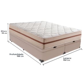 O conforto que sua casa precisa e a qualidade que você merece está na Kazamix!O Colchão Classic da Anjos é a escolha perfeita para quem busca o equilíbrio entre conforto, durabilidade e custo-benefício. Com molas ensacadas, proporciona suporte individualizado, garantindo noites de sono mais tranquilas e sem transferência de movimento. O conforto intermediário atende a diferentes preferências, enquanto o design clean, com superfície plana, traz um toque de modernidade ao ambiente.Além disso, conta com tratamento antiácaro, antialérgico e antifungo, promovendo um sono mais saudável e livre de alergias. Um investimento ideal para transformar suas noites e garantir bem-estar diariamente. Aproveite o conforto e a qualidade que você merece!Modelo: Classic 22Marca: AnjosTamanho: QueenDimensões: 158x198X22 (Largura x Comprimento x Altura)Conforto: IntermediárioSistema: Molas ensacadas Pillow: Não se AplicaPeso Máximo recomendado: 120 kg (Por pessoa)Proteções: Antiácaro, antialérgico, antifungo, antimofoGarantia: 1 ano pelo FabricanteO conforto que sua casa precisa e a qualidade que você merece está na KazamixAproveite cada metro quadrado do seu dormitório com a Cama Box Baú!Projetada com madeira de reflorestamento reforçada, a Cama Box Baú é a escolha ideal para quem busca otimização de espaço e praticidade na organização do dia a dia.Com um baú generoso, ela oferece a solução perfeita para armazenar travesseiros extras, cobertores, malas e muito mais. Além disso, sua estrutura robusta suporta até 150 kg por pessoa, garantindo a sustentação ideal para o seu colchão e prolongando sua vida útil.O pistão a gás robusto proporciona uma abertura suave e segura do baú, oferecendo praticidade e resistência no uso diário. Para completar, o acabamento de alta qualidade combina perfeitamente com qualquer estilo de decoração, agregando elegância e versatilidade ao seu ambiente.Não perca tempo! Adquira agora mesmo sua Cama Box Baú e diga adeus à falta de espaço e desorganização.Marca: KazaMixModelo: BaúCor do Box: BegeTamanho: QueenDimensões: 158X198X37 (Largura x Comprimento x Altura) Estrutura: MadeiraPeso máximo recomendado: 150 kg (Por Pessoa)Altura do Box: 32 cm Altura dos Pés: 5 cm Altura total: 37 cm Garantia: 03 mesesSelo Ecologicamente CorretoAtenção: Antes de finalizar sua compra, certifique-se de que as dimensões do produto sejam adequadas para serem transportadas pelos elevadores, portas, escadas e corredores de sua residência. Ressaltamos que não nos responsabilizamos pelo transporte do produto por meios específicos, como escadas, guinchos ou içamentos.