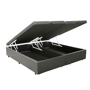 Cama Box Baú Bipartido Casal Blindado Sintético + Colchão Casal Espuma Extra Firme D33 Elegance Ortopédico 64x138x188 - Cinza