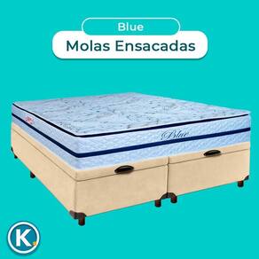 Cama Box Bau Blindado Queen + Colchão Molas Ensacadas Blue Paropas Conjunto Queen Colchão Blue + Cama Box Bau Colchão Queen com 32cm de altura, oferecendo conforto elevado e presença imponente
