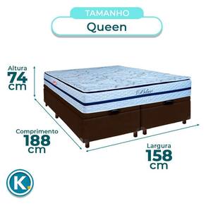 Modelo: Elite Marca: Nature Tamanho: Queen Tecido: Material Sintético Largura: 158cm Comprimento: 198cm Altura: 35cm Altura dos Pés: 7cm Material dos Pés: Madeira Suporte de Peso: 150Kg Peso: 40Kg Garantia: 3 Meses