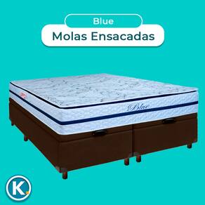 Cama Box Bau Blindado Queen + Colchão Molas Ensacadas Blue Paropas - Marrom