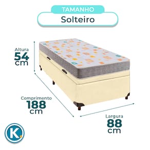 Conjunto Solteiro Colchão D20 + Cama Box BauColchão solteiro padrão com 12cm de altura, ideal para uso leve e versátilTecido em poliéster com toque macio e fácil manutençãoSuporta até 40kg, indicado para crianças ou uso ocasionalBase baú solteiro com 42cm de altura e amplo espaço interno para organizaçãoRevestimento em Material Sintético resistente, fácil de limpar e com visual modernoEstrutura reforçada com capacidade para até 150KgFicha Técnica Colchão:Modelo: D20Marca: InducolTamanho: SolteiroTecido: PoliésterLargura: 88cmComprimento: 188cmAltura: 12cmSuporte de Peso: 40KgGarantia: 3 MesesFicha Técnica Cama Box Bau:Modelo: EliteMarca: NatureTamanho: SolteiroTecido: Material Sintético Largura: 88cmComprimento: 188cmAltura: 35cmAltura dos Pés: 7cmMaterial dos Pés: MadeiraSuporte de Peso: 150KgPeso: 22KgGarantia: 3 MesesAtenção:Antes da compra certifique-se de que o produto passa por elevadores, portas e corredores.As transportadoras não realizam entregas por escadas ou içamentos.Caso o item não caiba no elevador, a entrega será considerada concluída no térreo do prédio.A cor e tonalidade do produto pode variar de acordo com o dispositivo que o usuário está acessando.