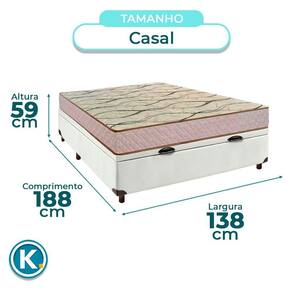 Suporta até 150kg, garantindo firmeza e durabilidade para diferentes perfis Base baú Casal com 37cm de altura e amplo espaço interno para organização