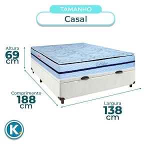 Suporte para até 150kg, ideal para quem busca firmeza e resistência Base baú Casal com 37cm de altura e amplo espaço interno para organização