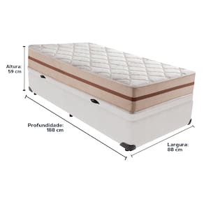 O conforto que sua casa precisa e a qualidade que você merece está na Kazamix!O Colchão Classic da Anjos é a escolha perfeita para quem busca o equilíbrio entre conforto, durabilidade e custo-benefício. Com molas ensacadas, proporciona suporte individualizado, garantindo noites de sono mais tranquilas e sem transferência de movimento. O conforto intermediário atende a diferentes preferências, enquanto o design clean, com superfície plana, traz um toque de modernidade ao ambiente.Além disso, conta com tratamento antiácaro, antialérgico e antifungo, promovendo um sono mais saudável e livre de alergias. Um investimento ideal para transformar suas noites e garantir bem-estar diariamente. Aproveite o conforto e a qualidade que você merece!Modelo: Classic 22Marca: AnjosTamanho: SolteiroDimensões: 88x188X22 (Largura x Comprimento x Altura)Conforto: IntermediárioSistema: Molas ensacadas Pillow: Não se AplicaPeso Máximo recomendado: 120 kg (Por pessoa)Proteções: Antiácaro, antialérgico, antifungo, antimofoGarantia: 1 ano pelo FabricanteO conforto que sua casa precisa e a qualidade que você merece está na KazamixAproveite cada metro quadrado do seu dormitório com a Cama Box Baú!Projetada com madeira de reflorestamento reforçada, a Cama Box Baú é a escolha ideal para quem busca otimização de espaço e praticidade na organização do dia a dia.Com um baú generoso, ela oferece a solução perfeita para armazenar travesseiros extras, cobertores, malas e muito mais. Além disso, sua estrutura robusta suporta até 150 kg por pessoa, garantindo a sustentação ideal para o seu colchão e prolongando sua vida útil.O pistão a gás robusto proporciona uma abertura suave e segura do baú, oferecendo praticidade e resistência no uso diário. Para completar, o acabamento de alta qualidade combina perfeitamente com qualquer estilo de decoração, agregando elegância e versatilidade ao seu ambiente.Não perca tempo! Adquira agora mesmo sua Cama Box Baú e diga adeus à falta de espaço e desorganização.Marca: KazaMixModelo: BaúCor do Box: BrancoTamanho: SolteiroDimensões: 88X188X37 (Largura x Comprimento x Altura) Estrutura: MadeiraPeso máximo recomendado: 150 kg (Por Pessoa)Altura do Box: 32 cm Altura dos Pés: 5 cm Altura total: 37 cm Garantia: 03 mesesSelo Ecologicamente CorretoAtenção: Antes de finalizar sua compra, certifique-se de que as dimensões do produto sejam adequadas para serem transportadas pelos elevadores, portas, escadas e corredores de sua residência. Ressaltamos que não nos responsabilizamos pelo transporte do produto por meios específicos, como escadas, guinchos ou içamentos.