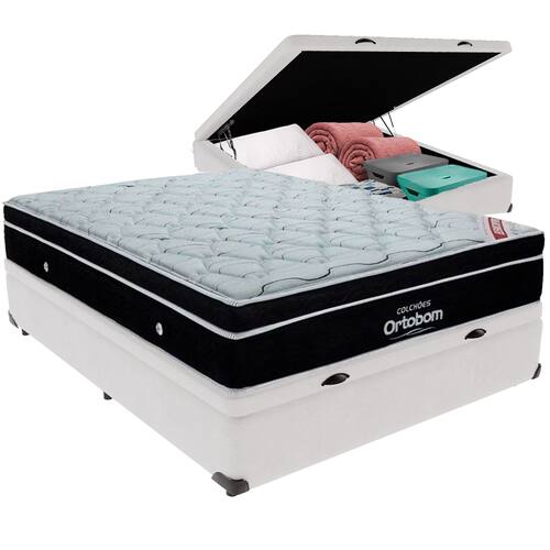 O conforto que sua casa precisa e a qualidade que você merece está na Kazamix!Desfrute do máximo conforto com o Colchão Elegant Ortobom! Sua estrutura de molas ensacadas, combinada com espuma D26 de alta densidade, proporciona o suporte perfeito para uma noite de sono revigorante. O Pillow Euro oferece um toque adicional de suavidade, garantindo um descanso ainda mais relaxante.Com o sistema No Turn, a manutenção se torna super simples, pois não é necessário virar o colchão. A fibra de bambu, que possui um toque macio e aconchegante, também contribui para um ambiente mais sustentável e confortável.Experimente o Colchão Elegant Ortobom e descubra o conforto, a qualidade e a inovação que você merece. Invista em noites de sono incríveis!Modelo: ElegantMarca: OrtobomTamanho: CasalDimensões: 138x188X28 (Largura x Comprimento x Altura)Conforto: FirmeSistema: Molas EnsacadasPillow: Euro PillowPeso Máximo recomendado: 150 kg (Por pessoa)Proteções: Antiácaro, antialérgico, antifungo, antimofoGarantia: 1 ano pelo FabricanteO conforto que sua casa precisa e a qualidade que você merece está na KazamixAproveite cada metro quadrado do seu dormitório com a Cama Box Baú!Projetada com madeira de reflorestamento reforçada, a Cama Box Baú é a escolha ideal para quem busca otimização de espaço e praticidade na organização do dia a dia.Com um baú generoso, ela oferece a solução perfeita para armazenar travesseiros extras, cobertores, malas e muito mais. Além disso, sua estrutura robusta suporta até 150 kg por pessoa, garantindo a sustentação ideal para o seu colchão e prolongando sua vida útil.O pistão a gás robusto proporciona uma abertura suave e segura do baú, oferecendo praticidade e resistência no uso diário. Para completar, o acabamento de alta qualidade combina perfeitamente com qualquer estilo de decoração, agregando elegância e versatilidade ao seu ambiente.Não perca tempo! Adquira agora mesmo sua Cama Box Baú e diga adeus à falta de espaço e desorganização.Marca: KazaMixModelo: BaúCor do Box: BrancoTamanho: CasalDimensões: 138X188X37 (Largura x Comprimento x Altura) Estrutura: MadeiraPeso máximo recomendado: 150 kg (Por Pessoa)Altura do Box: 32 cm Altura dos Pés: 5 cm Altura total: 37 cm Garantia: 03 mesesSelo Ecologicamente CorretoAtenção: Antes de finalizar sua compra, certifique-se de que as dimensões do produto sejam adequadas para serem transportadas pelos elevadores, portas, escadas e corredores de sua residência. Ressaltamos que não nos responsabilizamos pelo transporte do produto por meios específicos, como escadas, guinchos ou içamentos.