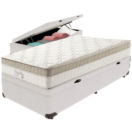 Com um baú generoso, ela oferece a solução perfeita para armazenar travesseiros extras, cobertores, malas e muito mais. Além disso, sua estrutura robusta suporta até 150 kg por pessoa, garantindo a sustentação ideal para o seu colchão e prolongando sua vida útil.