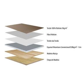 Características Gerais da Cama Box - Não acompanha Cantoneira - Articulação em Aço - Molas de Articulação Forração Revestimento da Cama Box - Jacquard Tipo de bordado do tecido da lateral Cama Box - Matelassê Sobre os Pés para Cama Box - Pés foto ilustrativa - Pés Fixos ABS/PVC Altura da Cama Box com os pés - 43