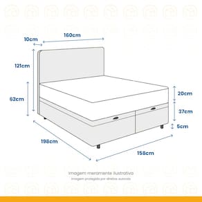 - Dimensões do produto (largura x comprimento x altura) 158x198x42cm.