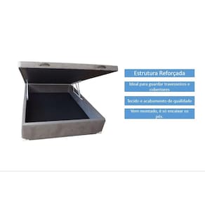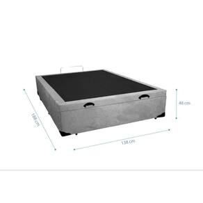 O Box Baú Cinza com Pistão tem um sistema de fácil abertura por pistões a Gás (amortecedores). Proporciona para o seu quarto melhor aproveitamento de espaço, pois seu amplo baú interno é ideal para guardar objetos, roupas de cama, travesseiros , edredons , etc....- Base com estrutura produzida em madeira de reflorestamento tratada.- Estrutura: Em madeira- Revestimento: Tecido- Tratamento: Antialérgico e Antiácaro- Pistão a Gás: (Maior durabilidade e maior facilidade no manuseio)- Contém 02 puxadores, para maior facilidade na abertura.- Contém 01 Arco na parte de trás para o colchão não escorregar.CAMA BOX BAÚ 1,38 X 1,88 - 30CM PROFUNDIDADE - ALTURA TOTAL 48 CM CAMA BOX BAÚ CASAL (Sem colchão)Largura: 1,38Comprimento: 1,88Profundidade: 30cm (parte interna do Baú) = 48cm de altura total com pezinhos.Material: Suede.Cor: Cinza.Importante:-As imagens ambientadas são meramente ilustrativas e podem apresentar itens que não compõe o produto.- As cores do produto podem variar de acordo com o monitor, a iluminação do ambiente ou sua percepção visual.- Verifique se o local de entrega está apto a receber o produto com as dimensões informadas.- Não nos responsabilizamos em subir pelas escadas ou içar o produto.- Montagens, desmontagens e instalações são responsabilidades do cliente. Estes serviços não estão inclusos no valor do produto. Para evitar imprevistos na sua entrega, confira as dimensões do produto no momento da compra e certifique-se de que ele passará por elevadores, portas, escadas e corredores.