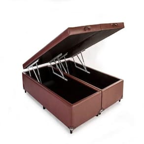 Cama Box Baú Casal 138 Bipartido - Bello Box Tecido Sintético Marrom com Colchão New York Preto D28 - 100% Espuma - 54x138x188