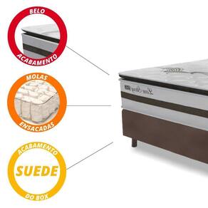 Cama Box Baú Casal 1,38m Colchão Molas Ensacadas 30cm Love Story 138x188x71cm MODELO:: Love Story | MARCA:: Gazin / Marca do box Prince, foto ilustrativa | COR:: Branco / Marrom | MEDIDAS DO CONJUNTO: A: 71cm L: 138cm P: 188cm | SUPORTA ATÉ:: 100kg de cada lado. | ESPUMAS:: S17 + D26 + D26 | REVESTIMENTO SUPERIOR:: Malha em viscose. | FAIXA COLCHÃO:: Sintético | REVESTIMENTO INFERIOR:: Tecido 100% Polipropileno | ESTILO:: One face | MATERIAL:: Pillow Top | DIFERENCIAIS:: Tampo em malha com fibra Siliconada. Revestimento lateral em Suede Velour com tecnologia Ultrassônica. | MOLEJO:: Molas ensacadas. | NÍVEL DE CONFORTO / MACIEZ:: Médio. | GARANTIA: Colchão: 6 meses/ Box; 3 meses | INMETRO:: Molas Certificadas pelo INMETRO | PRODUTO: Cama Box Baú Casal | CLASSIFICAÇÃO DA CAMA: Casal Cor: Única