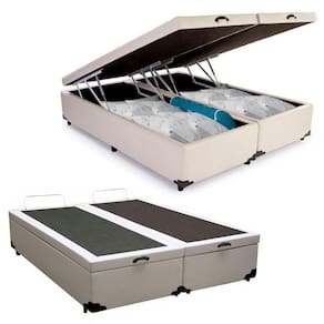 Cama Box Baú Casal Bipartido Sintético Cama Branco 138x188x45cm