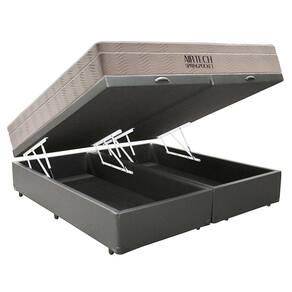 Cama Box Baú Casal Sintético Bipartido Cinza + Colchão Ortobom Airtech Molas Ensacadas 65x138x188