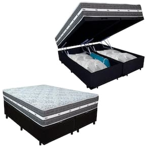 Cama Box Baú Casal Bipartido Suede + Colchão Black Graphite Molas Ensacadas 138x188x64cm