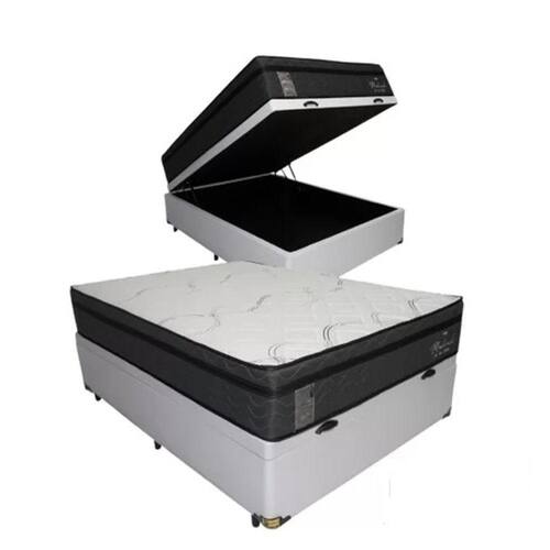 Cama Box Baú Casal Blindada + Colchão De Molas Ensacadas - Probel - Madrid 138x188x72 - Branco