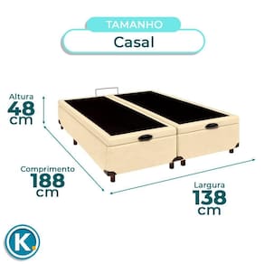Cama Box Bau Casal Blindado Nature Begetiza 138x188 Base baú Casal com 37cm de altura e amplo espaço interno para organização Revestimento em Veludo , fácil de limpar e com visual moderno