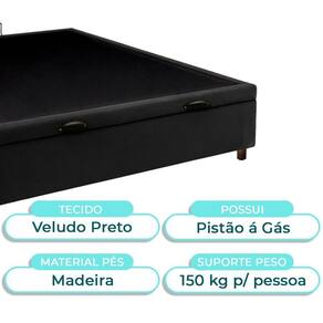 Cama Box Bau Casal Blindado Nature Preto 138x188 Base baú Casal com 42cm de altura e amplo espaço interno para organização Revestimento em Veludo , fácil de limpar e com visual moderno