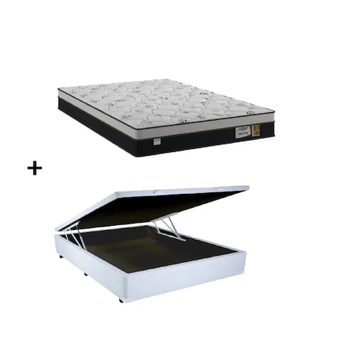 Material do produto Corino Branco (Base Box), Poliéster (Tametrospo do Colchão), Poliéster e Polipropileno (Laterais do Colchão), Madeira Reforçada (Estrutura da Base)