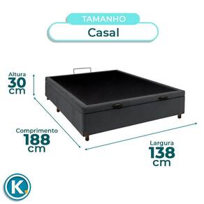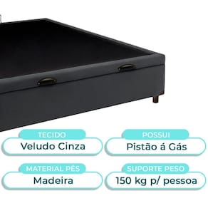Cama Box Baú Casal Cinza Nature 138x188 Base baú Casal com 37cm de altura e amplo espaço interno para organização Revestimento em Veludo , fácil de limpar e com visual moderno