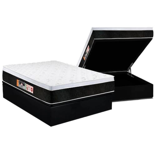 Conjunto Box Baú Casal: Colchão Espuma Castor D45 Black e White Air Euro Pillow + Base CRC Courano Black(138x188)