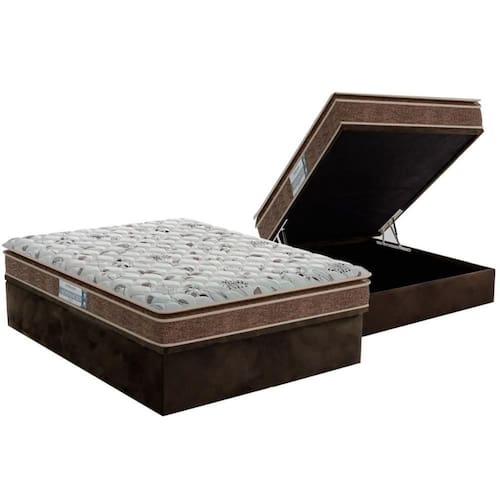 Abaixo segue os produtos do KIT: Conjunto Box Baú Casal: Colchão Espuma Probel D45 Advanced Super + Base CRC Suede Brown (138x188)