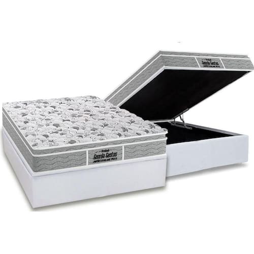Abaixo segue os produtos do KIT: Cama Box Baú Casal: Colchão Anatômico Probel D45 Guarda Costas PróExtreme Plus + Base CRC Courano White (138x188)