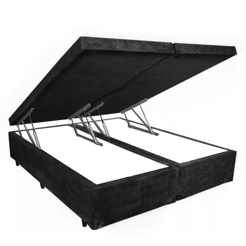 Cama Box Baú Casal Diamond Suede Preto Bipartido Com Pistão A Gás - 138x188x41