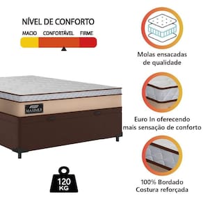 MODELO: Cama Box Baú Casal Colchão Maximus Molas Ensacadas 138x188x65cm