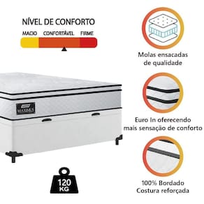 REVESTIMENTO INTERIOR: Molas ensacadas de qualidade que permitem que o colchão suporte até 120kg por pessoa, oferecendo conforto e estabilidade durante o sono