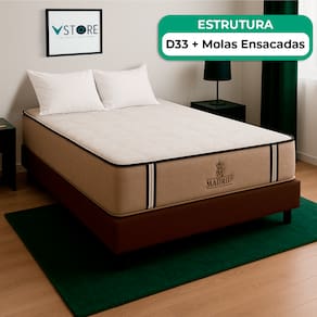 A tecnologia que a sua casa merece está na V-Store! O Conjunto Colchão Madrid + Base Box Baú Bravus da V-Store oferece o equilíbrio perfeito entre conforto, praticidade e elegância. O colchão, com molas ensacadas e sistema EPS, garante noites de sono tranquilas, com suporte ideal e proteção contra ácaros e alergias. Já a base box baú, feita com madeira reflorestada, conta com um design sofisticado, amplo espaço de armazenamento e funcionalidade adicional para guardar travesseiros, malas e cobertores. Com capacidade para até 150 kg por pessoa, esse conjunto é ideal para quem busca qualidade e praticidade.Característica Do Colchão: Modelo: MadridMarca: V-StoreTamanho: CasalDimensões: 138x28x188 (Largura x Altura x Comprimento)Conforto: MédioSistema: Molas EnsacadasPillow: Não se aplicaPeso Máximo recomendado: 150 kg (Por pessoa)Proteções: Antiácaro, antialérgico, antifungo, antimofoGarantia: 12 Meses (Espuma) / 10 anos ( Conjunto de Molas Ensacadas)Característica Da Base: Marca: V-StoreModelo: BravusCor do Box: MarromTamanho: CasalDimensões: 138x44x188 (Largura x Altura x Comprimento)Estrutura: MadeiraPeso máximo recomendado: 150 kg (Por Pessoa)Altura do Box: 38 cmAltura dos Pés: 6 cmAltura total: 44 cmGarantia: 12 Meses (Estrutura) / 3 meses (Tecido)Selo Ecologicamente CorretoAtenção:- Antes de finalizar sua compra, recomendamos que verifique se as dimensões do produto são adequadas para serem transportadas pelos elevadores, portas, escadas e corredores de sua residência. Ressaltamos que não nos responsabilizamos pelo transporte do produto por meios específicos, como escadas, guinchos ou içamentos.- É possível que hajam leves variações de cor de acordo com o dispositivo que está sendo utilizado como smartphones, computadores, monitores e outros.
