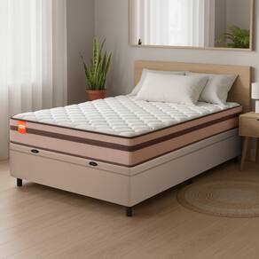 ITENS INCLUSOS: 1 Colchão Casal (138cm), 1 Box Baú (138cm)