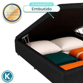 Cama Box Baú Casal Preto Nature 138x188 Base baú Casal com 37cm de altura e amplo espaço interno para organização Revestimento em Veludo , fácil de limpar e com visual moderno