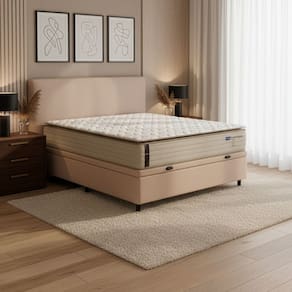 ITENS INCLUSOS: 1 Colchão Casal (138 cm), 1 Box Baú Casal (138 cm)