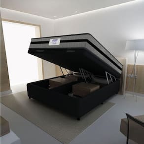 MODELO: Cama Box Baú Casal Queen Colchão Com Molas Ensacadas Rubi 158x198x73cm Suede Preto/Cinza