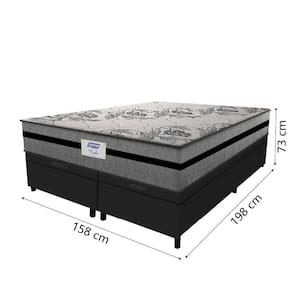 MEDIDAS DO COLCHÃO:: A = 32 cm L = 158 cm P = 198 cm | MEDIDAS DO BOX (cada um):: A = 41 cm / 35 cm (sem pés) L = 79 cm P = 198 cm | ALTURA DOS PÉS:: 6 cm | PESO:: 112,7 Kg | PESO SUPORTADO:: 120 kg por pessoa | MARCA COLCHÃO:: Gazin | REVESTIMENTO SUPERIOR:: Tecido de malha cinza floral (matelassê) com fibra siliconada | MODELO:: Cama Box Baú Casal Queen Colchão Com Molas Ensacadas Rubi 158x198x73cm Suede Preto/Cinza | MARCA BOX:: Prince | COR:: Preto/Cinza | REVESTIMENTO LATERAL:: Tecido 100% poliéster, por ser sintético não é propenso ao acúmulo de poeira e materiais orgânico, além de ser de fácil higienização | REVESTIMENTO INTERIOR:: Molas Ensacadas aliada com espuma D60, permitindo que o colchão suporte até 120 kg por pessoa | MOLAS:: Molas ensacadas de alta qualidade, que proporcionam maior suporte ao corpo | POSSUI EPS:: Sim | TECIDO BOX:: Suede | MATERIAL DA ESTRUTURA DO BOX:: Madeira de reflorestamento | PÉS:: 12 | MATERIAL DOS PÉS:: PVC | ITENS INCLUSOS:: 1 Colchão de 1,58m e 2 Box Baú de 0,79m | INSTRUÇÕES / CUIDADOS:: Utilizar em local seco com passagem de ar, não dobrar, fazer giro quinzenalmente no sentido pés/cabeceira | GARANTIA COLCHÃO:: 12 Meses | GARANTIA BOX:: 3 Meses | REQUER MONTAGEM:: Sim | TAMANHO DA CAMA:: Queen | TIPO DE CAMA:: Padrão | ALTURA:: 73 cm | LARGURA:: 158 cm | PROFUNDIDADE:: 198 cm Cor: Pret/Cinza