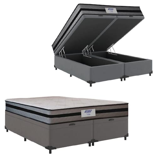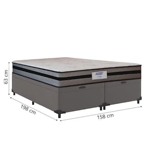 MODELO: Cama Box Baú Casal Queen Colchão Com Molas Ensacadas Vibe 158x198x63cm Suede Suporta Até 110 Kg Por Pessoa