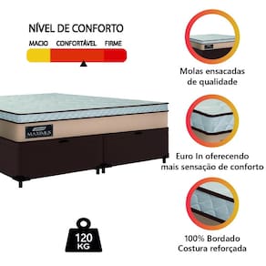MODELO: Cama Box Baú Casal Queen Colchão Maximus Molas Ensacadas 158x188x62cm