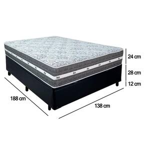 Cama Box Baú Casal Sintético + Colchão Black Graphite Molas Ensacadas 138x188x64cm