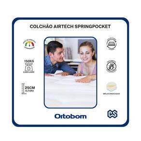 O Colchão De Molas Ensacadas AirTech Ortobom é indicado para pessoas de até 150kg proporcionando conforto firme, o que lhe confere firmeza suficiente para preservar sua coluna durante o sono sem comprometer seu conforto. Fabricado com matérias-primas de alta qualidade e durabilidade, o AirTech Ortobom garante conforto e por muito mais tempo.