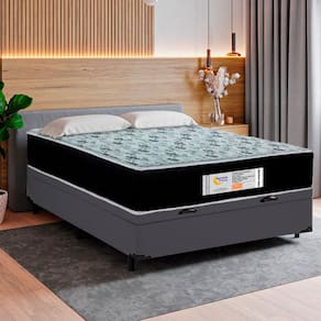 Cama Box Baú Casal Sintético + Colchão Molas Ensacadas SerenePrime Sonnolux 138x188x69 Cinza
