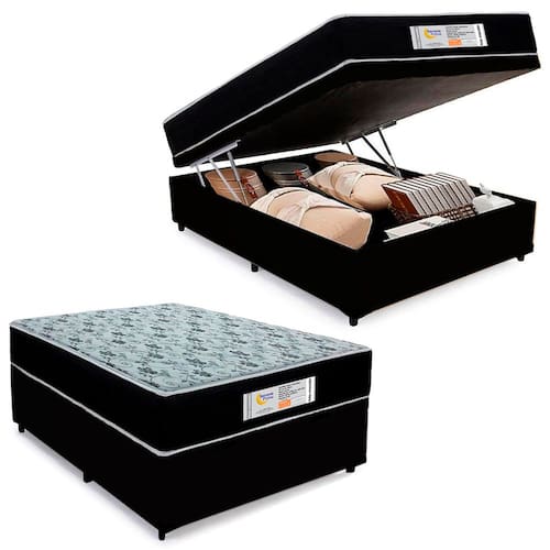 Cama Box Baú Casal Sintético + Colchão Molas Ensacadas SerenePrime Sonnolux 138x188x69 Preto - Preto
