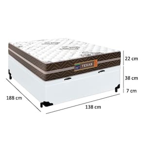 Dimensões do Produto: - Altura (Box + Colchão): 67cm - Largura: 138cm - Comprimento: 188cm - Altura dos Pés: 7cm