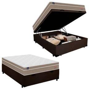 Cama Box Baú Casal Suede + Colchão Lis Molas Ensacadas Plumatex 138x188x64cm